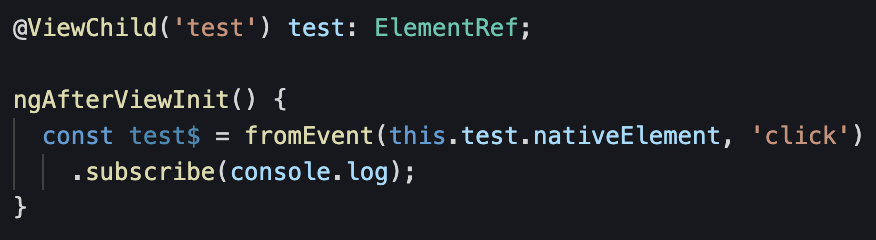 위 예는 요소의 클릭 이벤트에서 Observable을 만들고 있습니다.