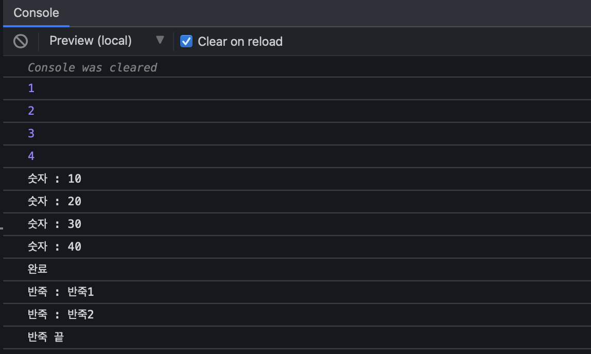 콘솔 로그에 출력된 문자열을 보면 자동으로 완료가 되어 complete를 호출한 것을 확인할 수 있습니다.