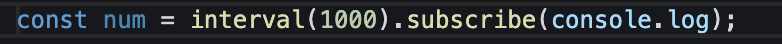 interval 역시 옵저버블을 생성해주는 생성 함수 입니다. Inteval은 정의한 간격으로 일련의 번호를 방출하는 옵저버블을 만들어줍니다. interval은 테스트 혹은 비동기식 숫자를 생성하는데 자주 사용됩니다. 위 예는 옵저버블이 중지될 때까지 1초마다 일련의 번호를 방출합니다.