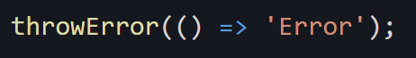 throwError에 원하는 에러를 반환하는 함수를 전달해야 합니다. 프로그램 내에서 다른 부분에 에러를 전파할 때 throwError를 사용하게 됩니다. throw는 에러를 바로 던지는 구문인 반면 throwError()는 에러 알림을 내보내는 옵저버블을 만드는 생성 함수임을 기억해 주세요. 특정 상황이 아니라면 자바스크립트의 throw문을 사용하여 간단히 오류를 발생시킬 수 있습니다.