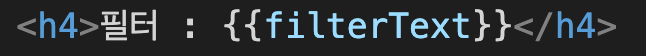 <h4>에서는 다시 filterText을 보간을 활용해서 표시하게 해놓았습니다.