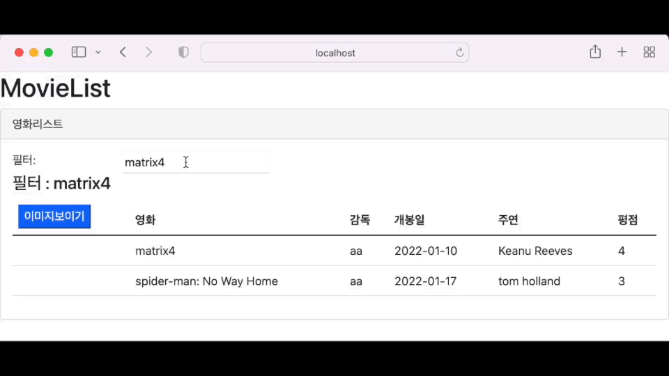 컴포넌트의 filterText라는 프로퍼티에 "matrix4"라는 텍스트를 필터의 기본 텍스트로 설정하였습니다.