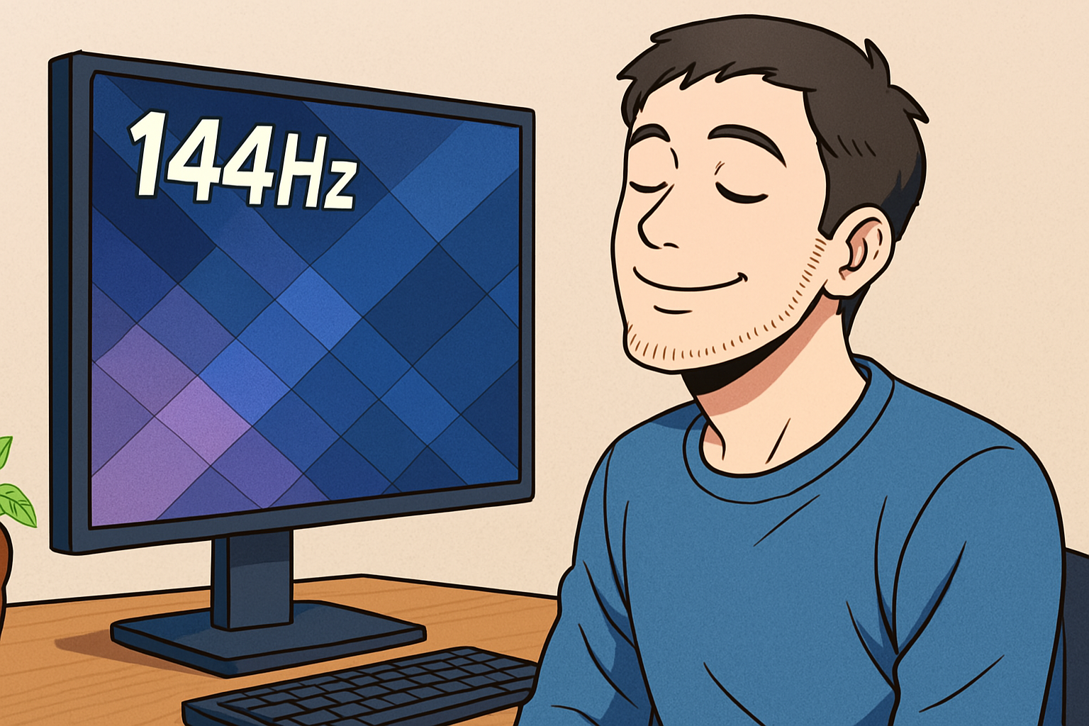 최소 75Hz 이상, 가능하면 100~144Hz 이상의 주사율을 가진 모니터를 추천합니다. - 단, 주사율만큼 중요한 건 밝기, 블루라이트, 플리커 프리 여부, 그리고 사용 습관입니다.