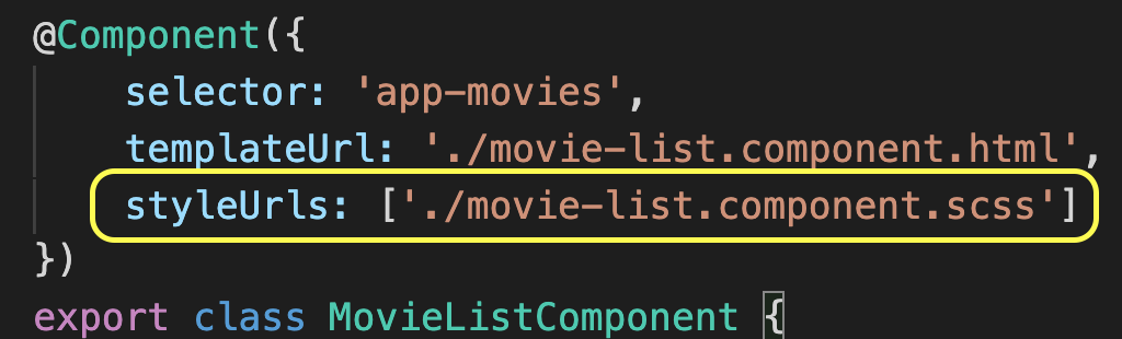 예제에서는 위에서 만든 movie-list.componet.scss를 지정하였습니다.