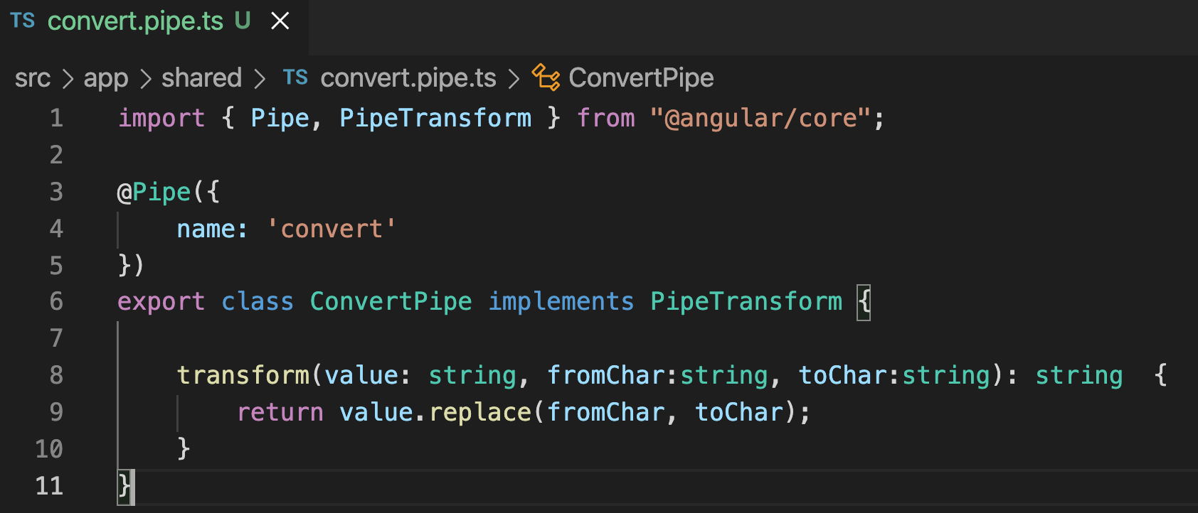 커스텀파이프의 파일명은 네임컨벤션에 따라서 convert.pipe.ts로 만들었습니다.