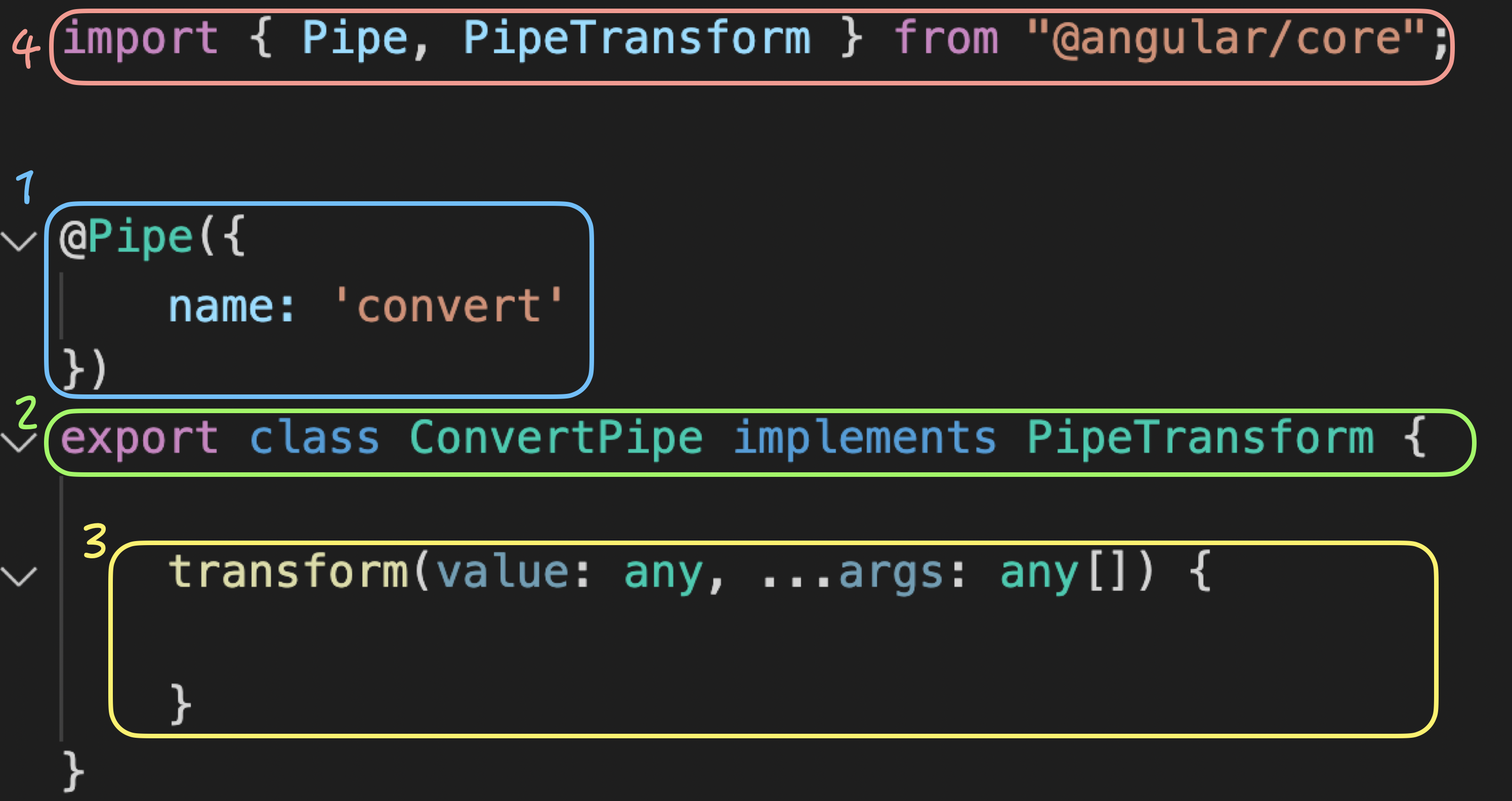 클래스 명은 ConvertPipe이고 PipeTransform을 implements하고 있습니다.