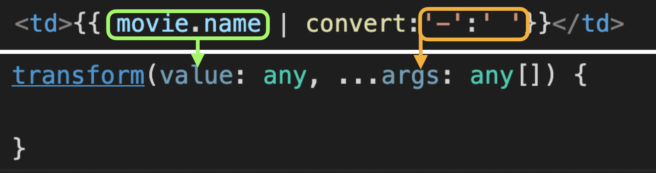위 예의 변환되는 값(movie.name)은 transform메서드에 대한 첫 번째 인수로 전달됩니다.