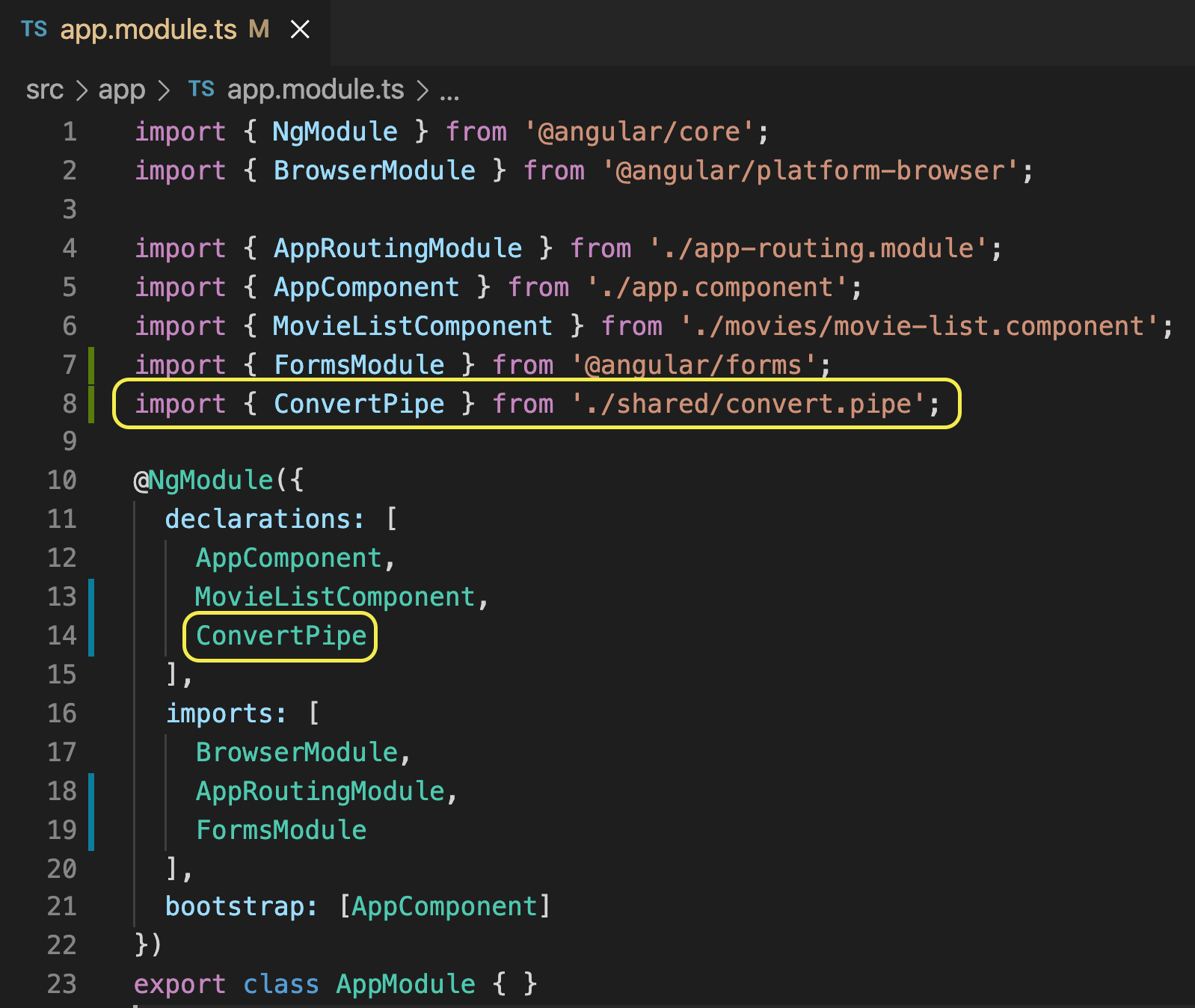 마지막으로 모듈에 만든 파이프를 선언해 주는걸 잊지 마세요.