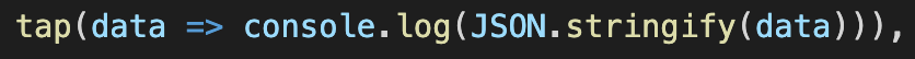 따라서 tap은 디버깅 또는 로깅에 사용하기에 좋습니다. 예시에서는 tap연산자에서 데이터를 콘솔에 기록하고 있습니다.
