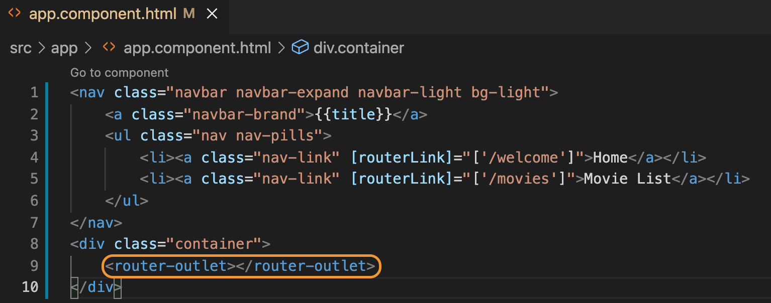 <router-outlet></router-outlet>을 템플렛에 작성하면, 작성한 디렉티브 위치에 라우팅 된 컴포넌트의 뷰가 나타나게 됩니다.
