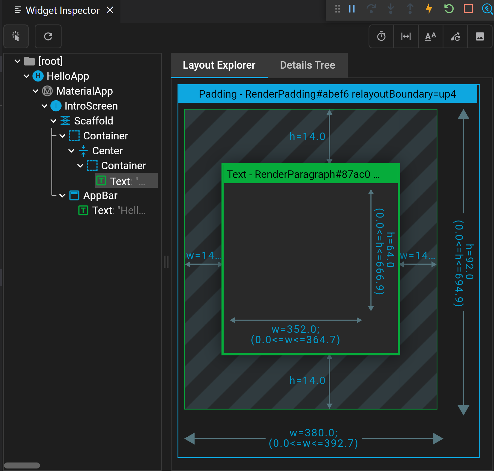 IntroScreen클래스에서 각 위젯에서 다른 위젯을 포함하고 있는데, 이러한 계층을 위젯 트리라고 하며 트리를 검사해 볼수도 있습니다.