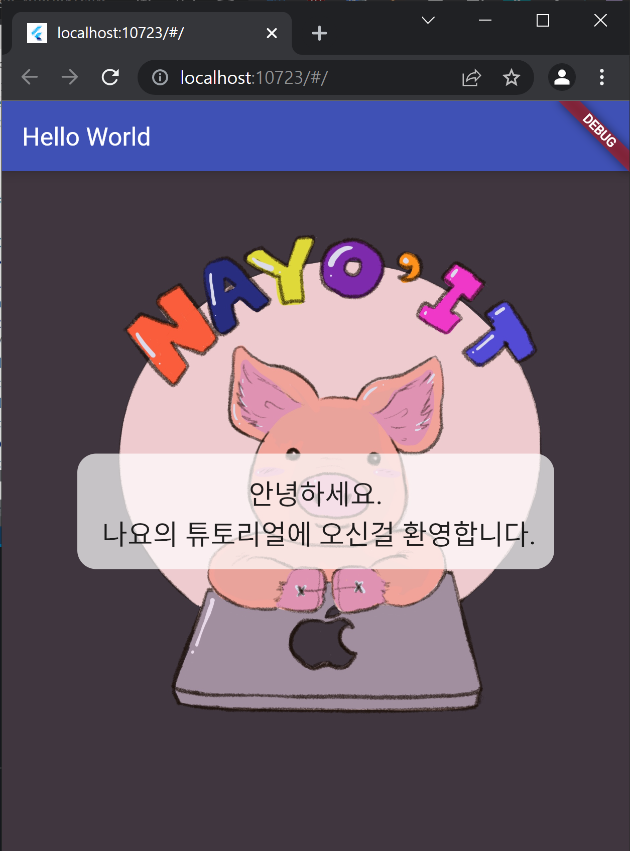 지금까지 안드로이드의 에뮬레이터에서 앱을 실행 했습니다. 웹에서 화면을 확인해 보겠습니다.