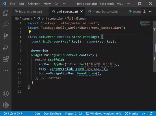 | [Flutter] 11. 플러터 체질량 계산기 만들기 (1) | 2022.02.23 |