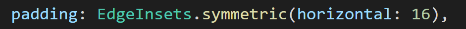 EdgeInsets으로 padding을 설정해 주었는데, symetric(horizontal: 16)은 왼쪽과 오른쪽으로 16px의 공간을 만들어 줍니다.