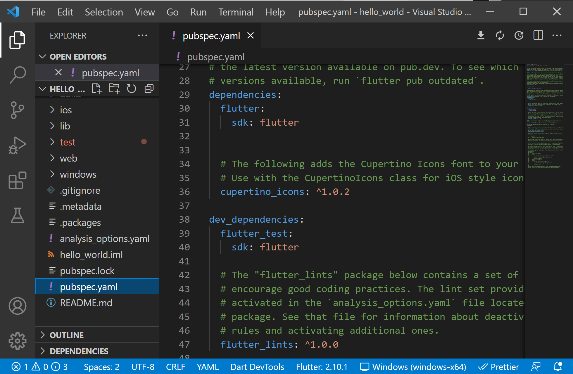 모든 플러터 프로젝트에는 플러터 루트폴더에서 찾을 수 있는 pubspec.yaml이라는 파일이 있습니다. pubspec.yaml 에서 앱에 필요한 모든 라이브러리와 패키지를 포함하는 모든 종속성을 지정할 수 있습니다.