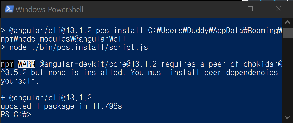 npm설치까지 완료했으니, 우리가 앵귤러에서 필요한 모든 것을 설치 할 수 있습니다.