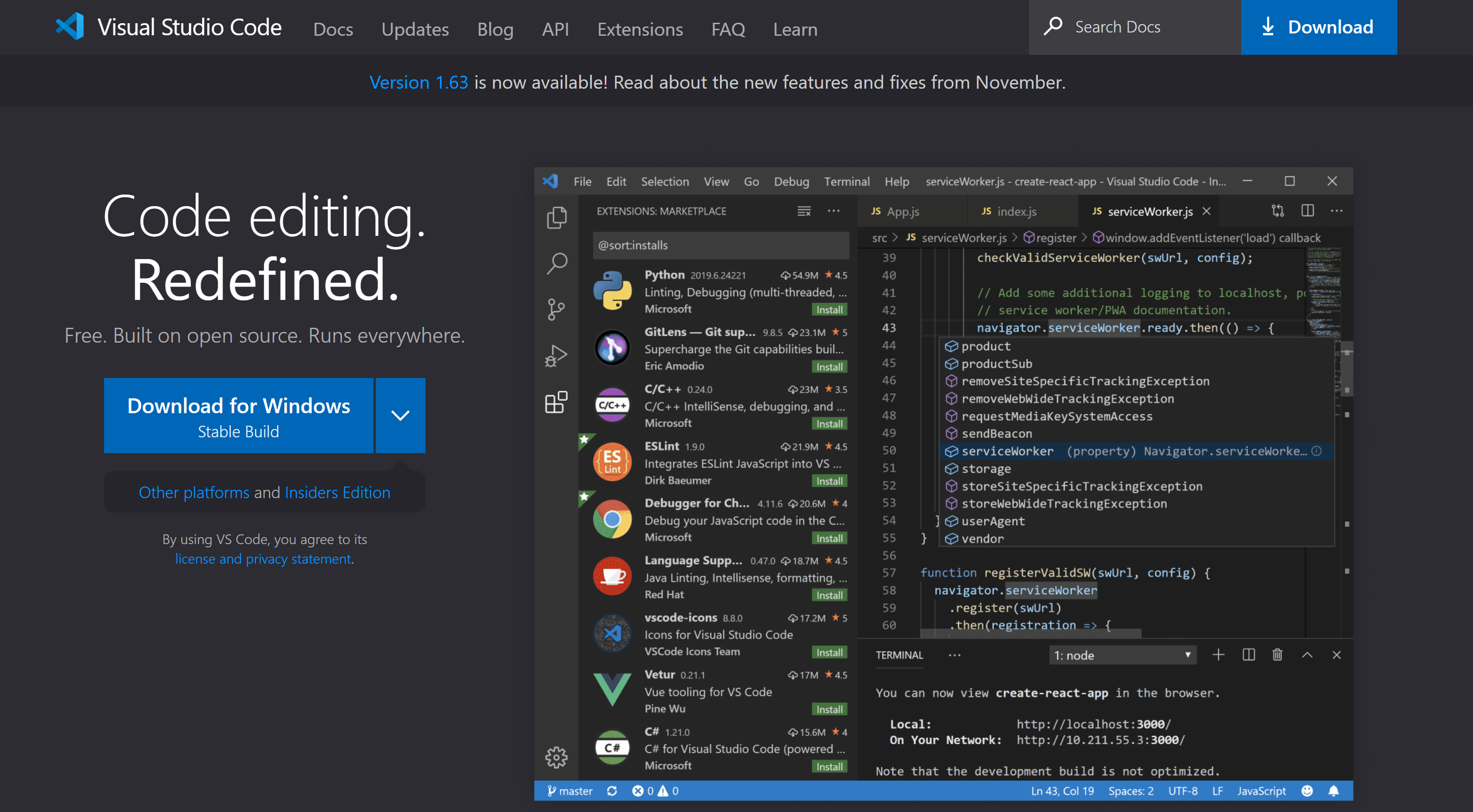 Mac에서 Linux, Windows 및 OS X에서 실행됩니다. 자동 완성, 인텔리센스, 구문 검사, 리팩터링과 같은 TypeScript 코딩을 지원하는 훌륭한 기능을 갖추고 있습니다.