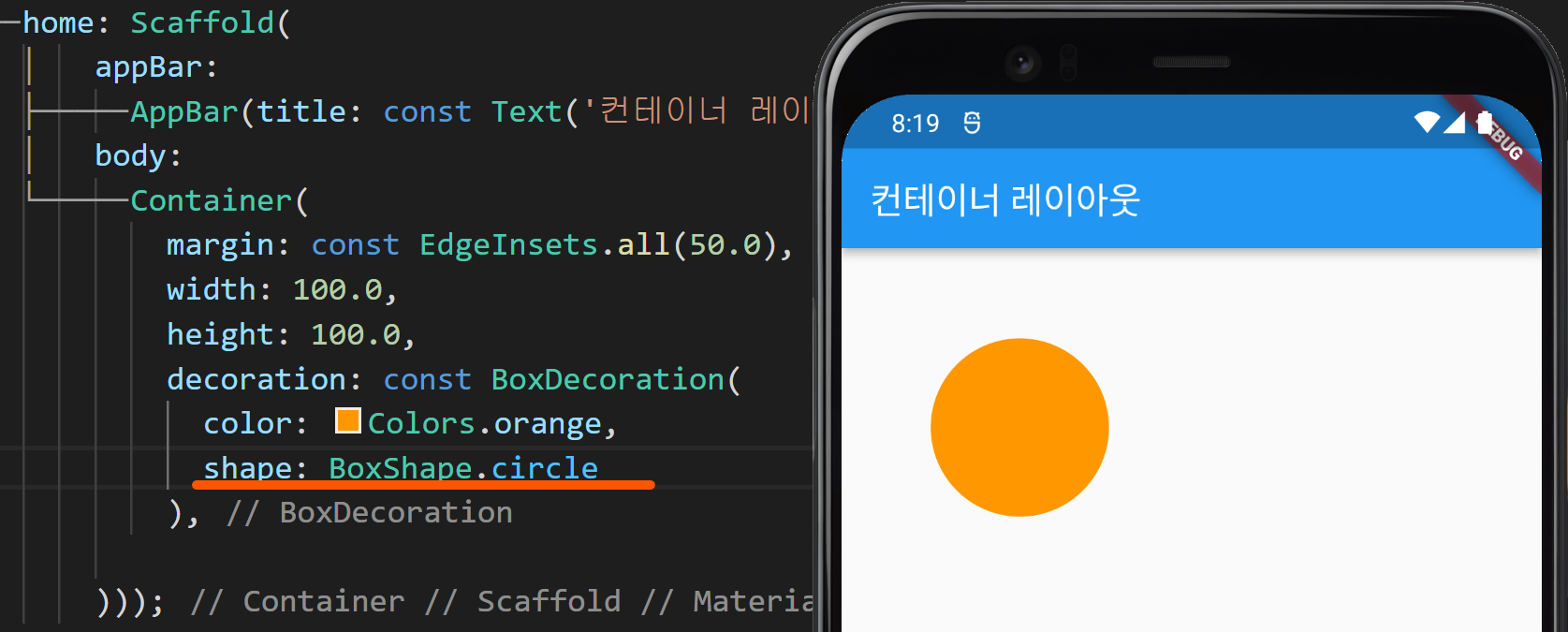 shape 속성은 BoxShape객체를 사용하여 circle과 rectangle 중에 선택할 수 있습니다. circle로 바꿔보겠습니다.