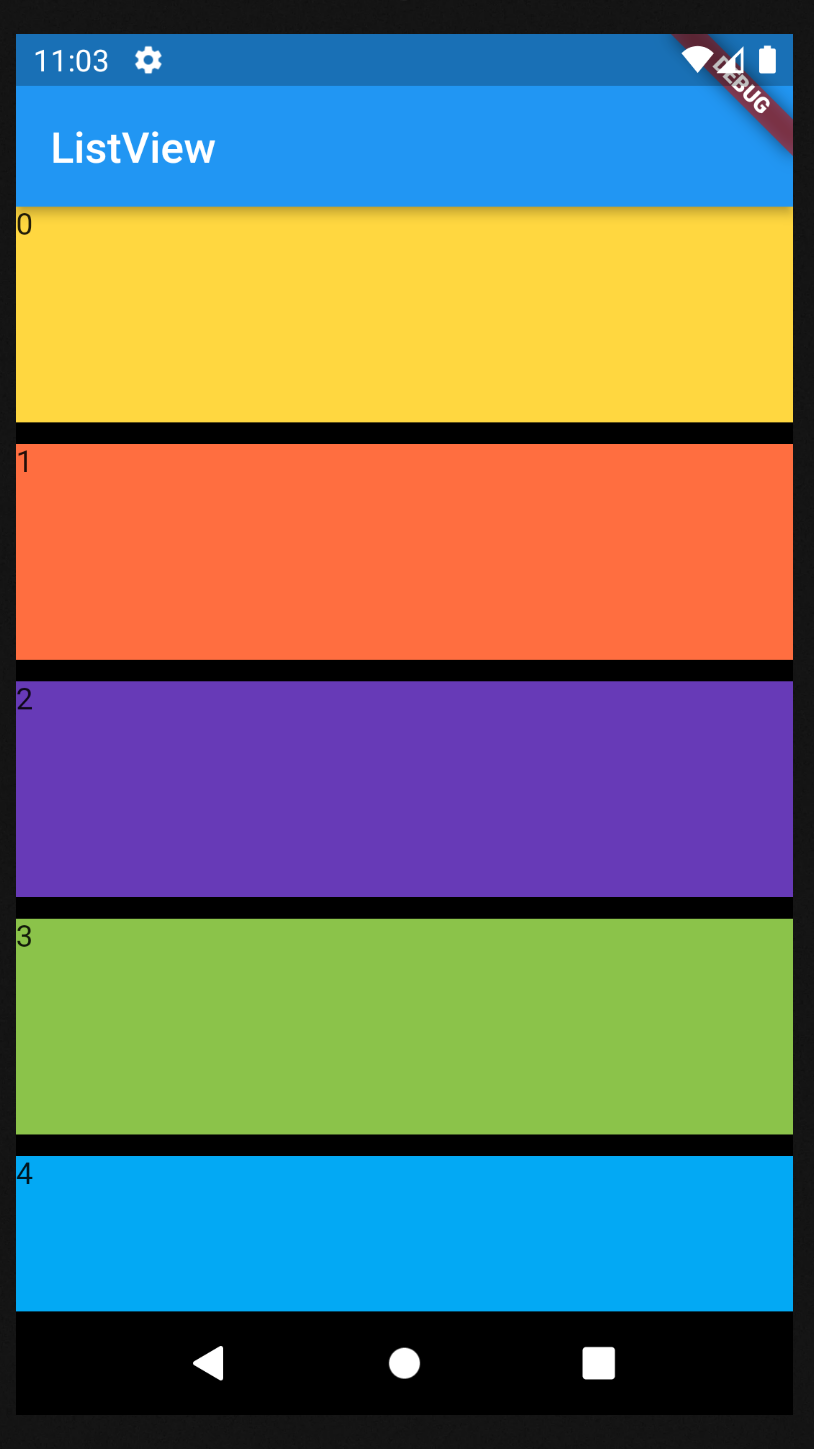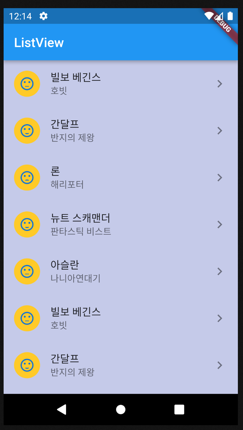 이제 리스트의 컬러 상자 대신 텍스트와 아이콘이 포함된 위젯으로 만들어 보겠습니다.