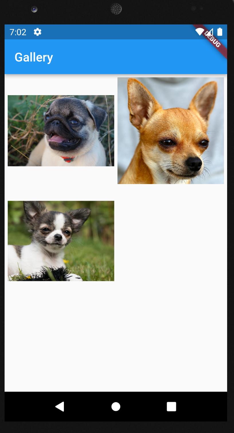 각 Photo 위젯이 깔끔하게 배치되고 있지는 않지만, 갤러리의 역할은 충분히 해내고 있는 것 같습니다. 우리가 해본 일을 다시 생각해보면 처음엔 정적 위젯인 Photo 위젯을 만들었고, Photo위젯을 다시 상태가 주입된 위젯 즉 생성자에서 데이터를 건네받는 위젯으로 만들어 갤러리 화면을 완성했습니다.