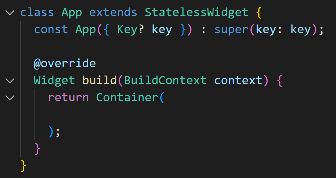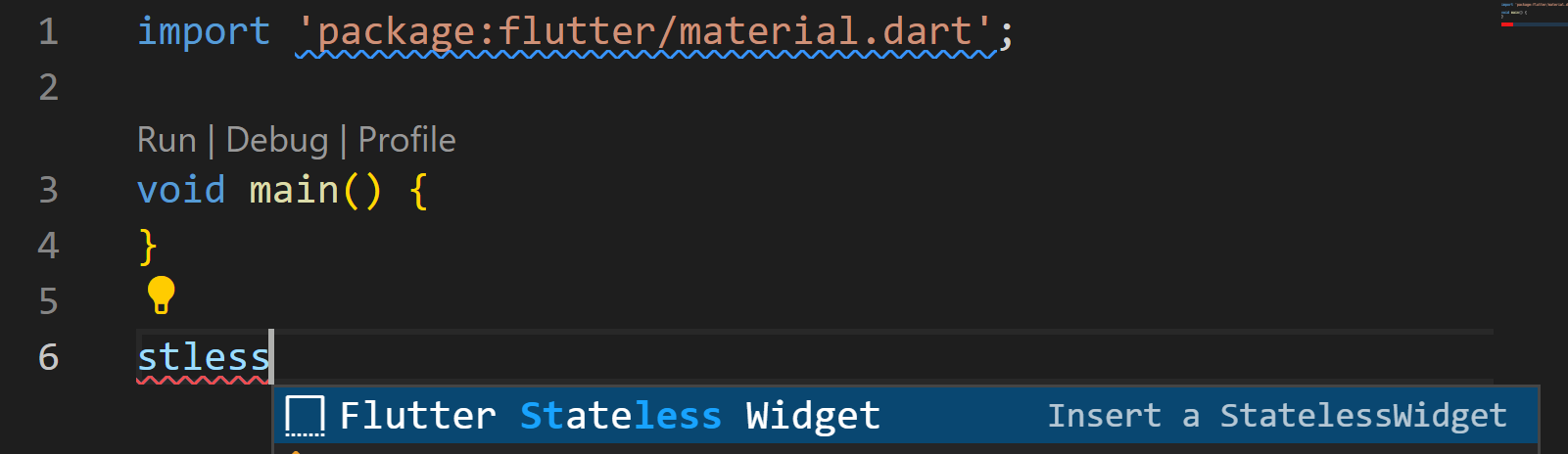 vscode에서 stless라고 작성하면 나오는 숏컷 메뉴에서 stateless widget을 쉽게 만들 수 있습니다.
