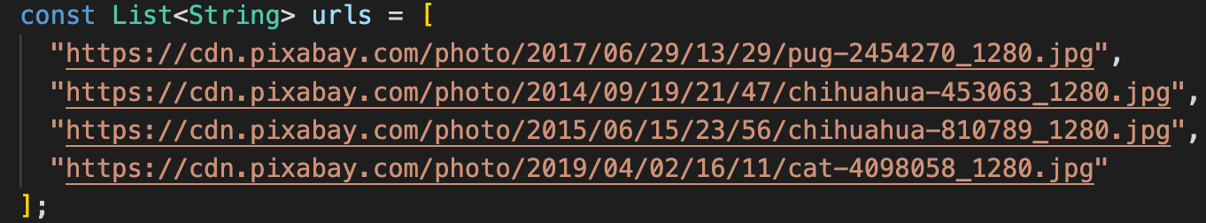 2. urls 변수는 사진을 url을 저장하는 리스트 변수 입니다.