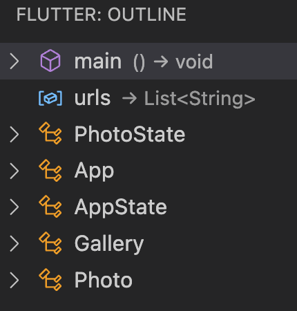 PhotoState 클래스는 위젯이 아닌 단순 클래스이며 각 사진들의 상태를 담는 클래스입니다.