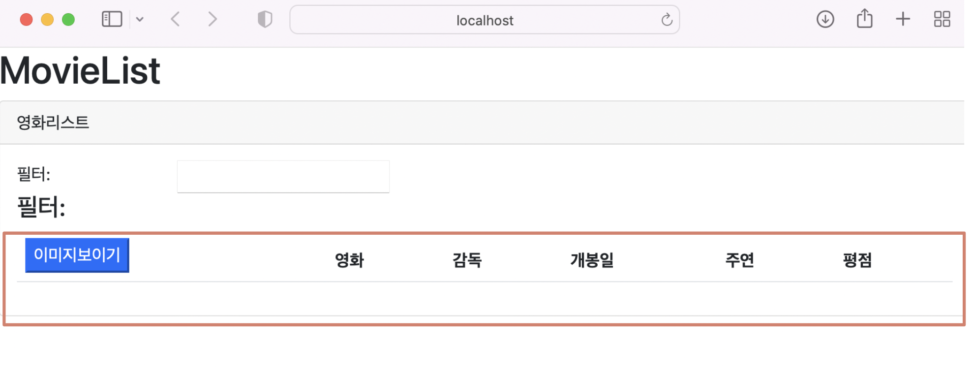 movies 배열에 데이터가 존재하니 테이블이 보이고 있네요.