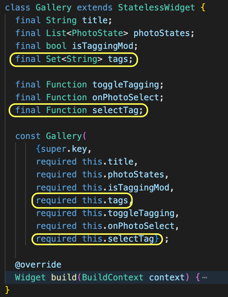 Gallery 위젯 역시 상태 값이 추가됨에 따라 tag와, select태그 프로퍼티가 추가되었고 생성자도 변경되었습니다. build메서드에서 제일 중요한 변경이 있었는데요.