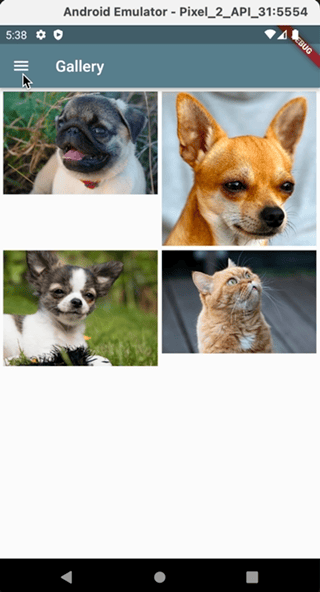 6. Gallery는 stateless위젯으로 Scaffold를 리턴해주고 있습니다. 스캐폴드에 drawer를 추가하였습니다. GridView에서 사진 위젯을 리턴하기 전에 필터를 하는 기능을 추가하였습니다.