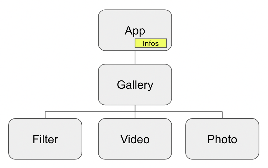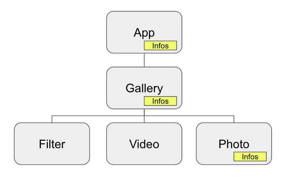 데이터는 여전히 App에 있고 바로 Photo에 infos의 속성들을 노출이 됩니다. 그리고 이상적으로는 Infos속성을 읽을 수 있고 필요에 따라 Infos의 상태도 업데이트가 가능한 양방향 통신이 가능해야 하겠네요. 어떻게 하면 이러한 구조를 구현할 수 있을까요?