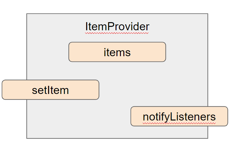 여기 ItemProvider라는 프로바이더는 items라는 상태를 제공해주고 있습니다. Provider가 작동하는 방식을 살펴보면 items 이라는 상태에 대한 업데이트가 있을 때 상태를 업데이트해주는 역할이 있어야 합니다. 그 역할을 setItem과 같은 메소드를 통해서 하게 됩니다. 상태가 바뀌었다면 상태를 참고해서 화면을 구성하고 있는 위젯들에게 업데이트 사실을 알려야 합니다. 상태 업데이트 알리고 싶을 때 notifyListeners메서드를 호출하고 위젯들이 갱신되게 됩니다.